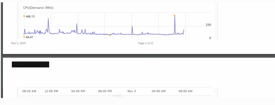 Generated PDF Report shows metric graph in two pages in Aria Operations.