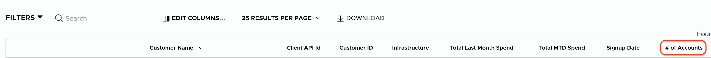 The "# of Accounts" column is a reflection of the number of AWS accounts listed in the channel customer's AWS Accounts page here https://apps.cloudhealthtech.com/aws_accounts
