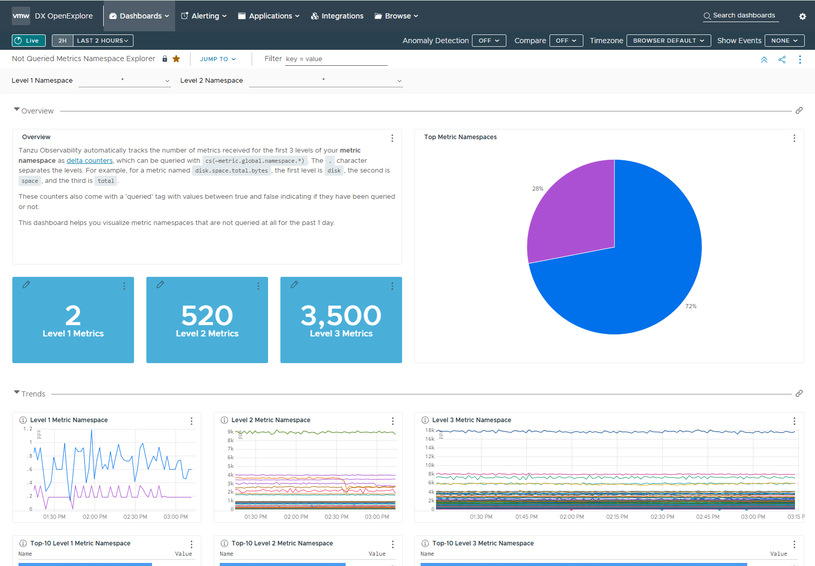 Charts as you see below are broken up by Namespace Level 1, 2 and 3.
