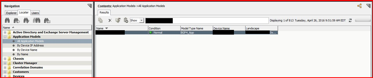 1. Run a Locater search for Application Models, filtering on the BGP4_App for the device: