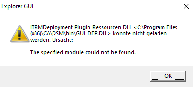 ITRMDeployment Plugin-Ressourcen-DLL <C:\Program Files (x86)\CA\DSM\bin\GUI_DEP.DLL> konnte nicht geladen werden. Ursache: