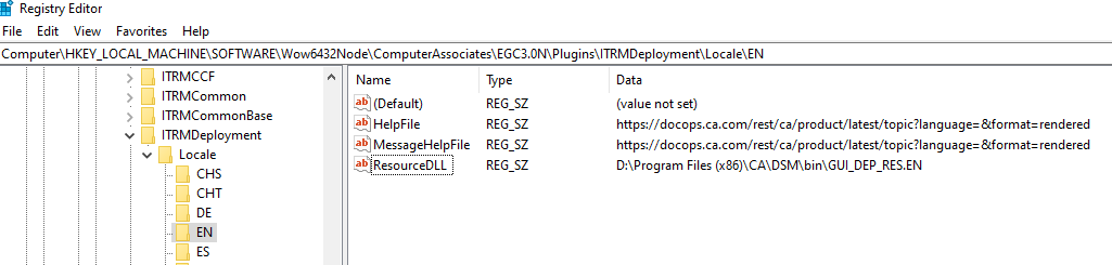 HKEY_LOCAL_MACHINE\SOFTWARE\Wow6432Node\ComputerAssociates\EGC3.0N\Plugins\ITRMDeployment\Locale\EN\ResourceDLL