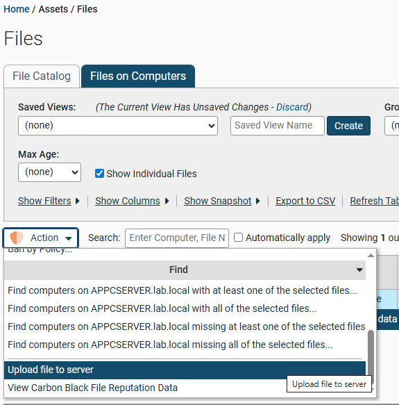 A console admin used the "Upload file to server" action on a malicious file.