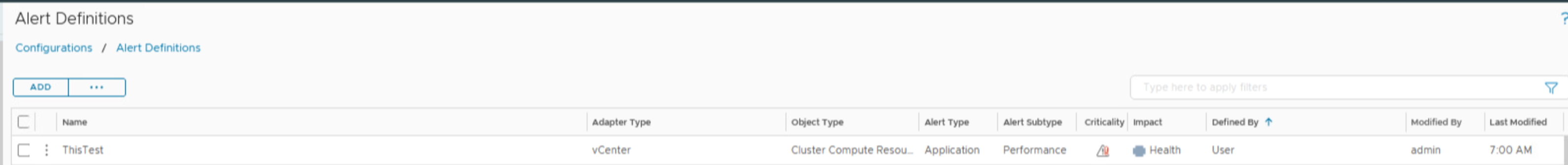 Configurations - Alerts - Alert Definition