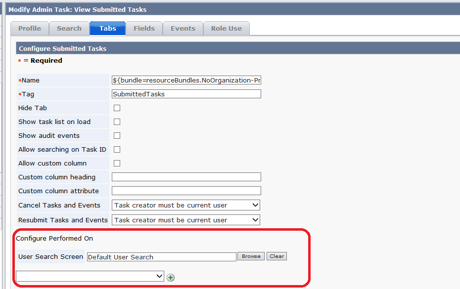 In high traffic environments, it is useful to be able to search the view submitted tasks for tasks that were performed on a particular user. Or, as a way of getting the history of all changes that were made to a particular object. Especially if these changes were unsanctioned or an error condition occurred and business flow needs to be reviewed.