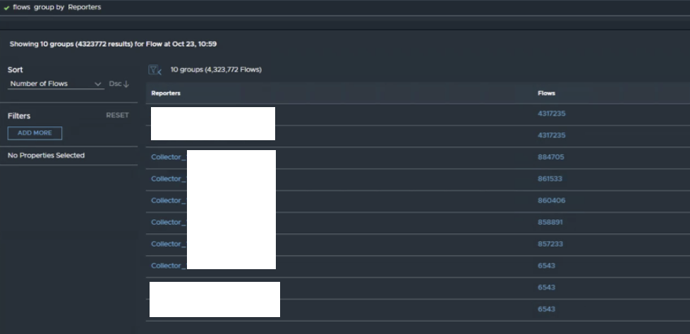 flows group by Reporters do not return any results, message received is Number of results exceeds the supported limit.