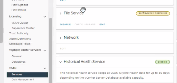 Or, if the file services feature is not needed, disable vSAN File Services by using the techdoc below to get rid of this alert: