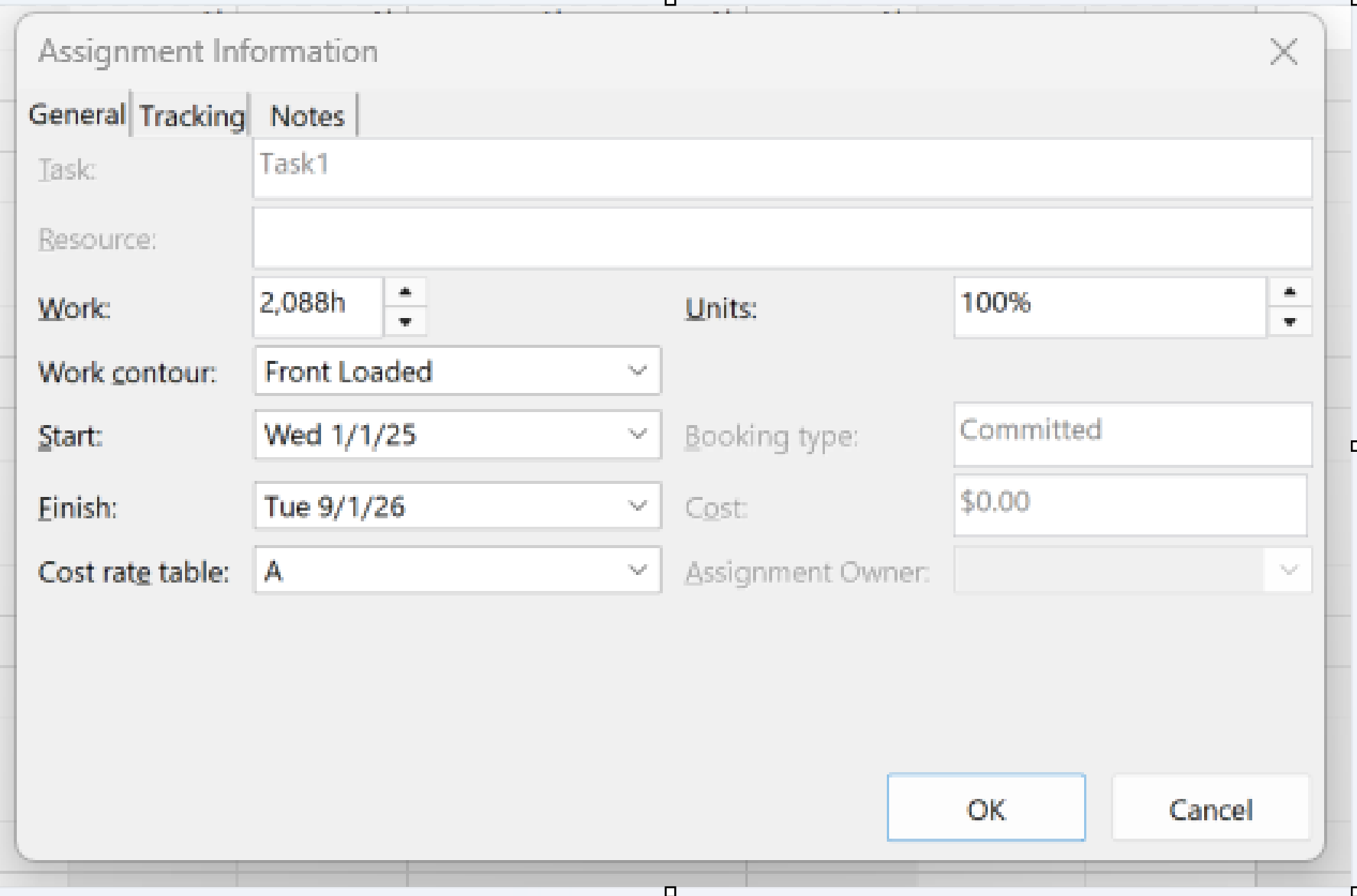 Double-click or right-click the task and select Information. This will bring up the Assignment Information