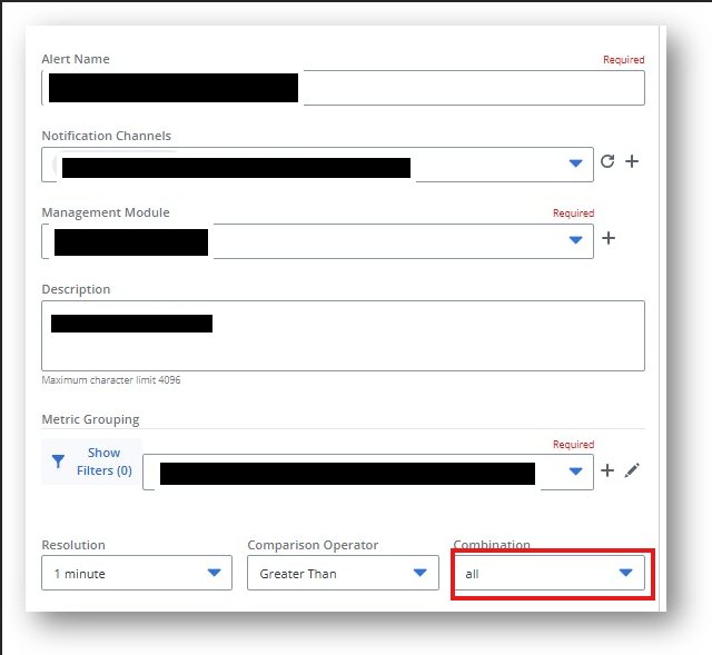 If the combination is any then the alarm metrices are coming fine.
