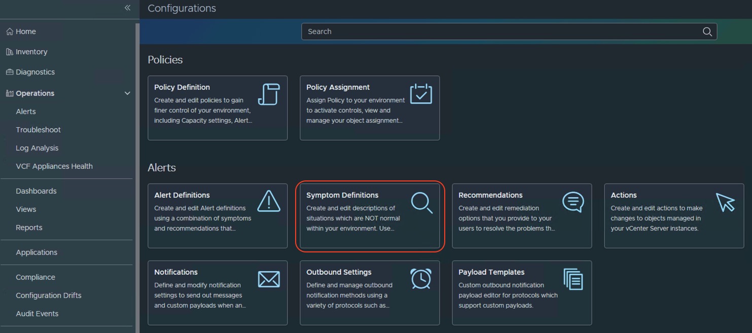 When “color method” is set to “symptom,” metric color coding follows the definitions in “Symptom Definitions.”