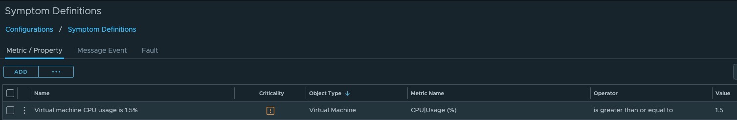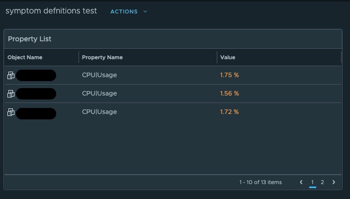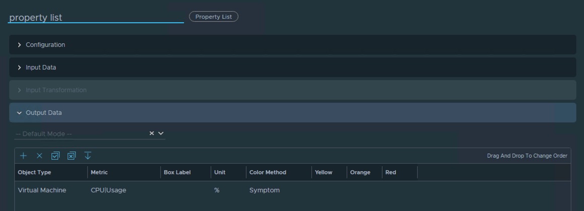 Color setting of metric values when using the "color method" of the property list widget "output data" as the "symptom".