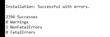 The install log shows that the upgrade was successful with 1 Non-Fatal error found: :