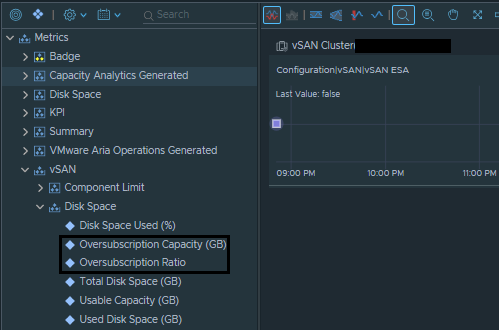 Unable to view the Oversubscription Capacity and Oversubscription metrics on ESA-enabled vSAN clusters, although they are visible on non-ESA vSAN clusters.
