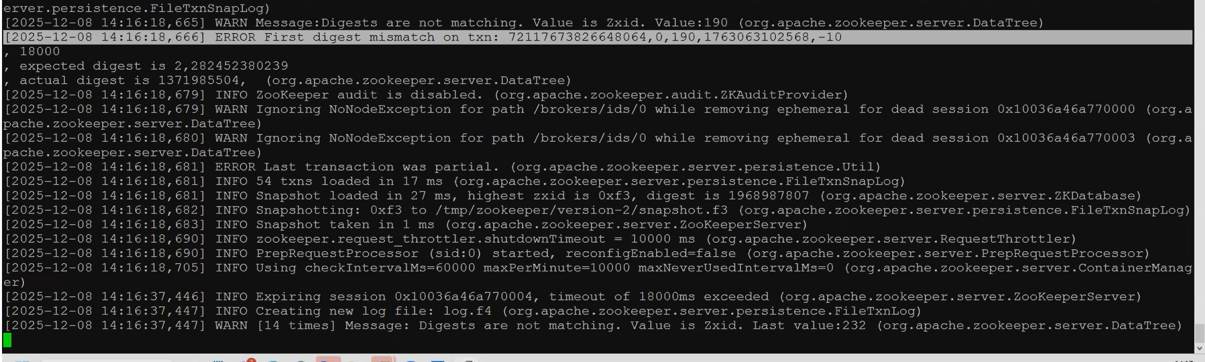 2. Corruption: Filesystem corruption or other issues might prevent ZooKeeper from reading or writing snapshots correctly.
