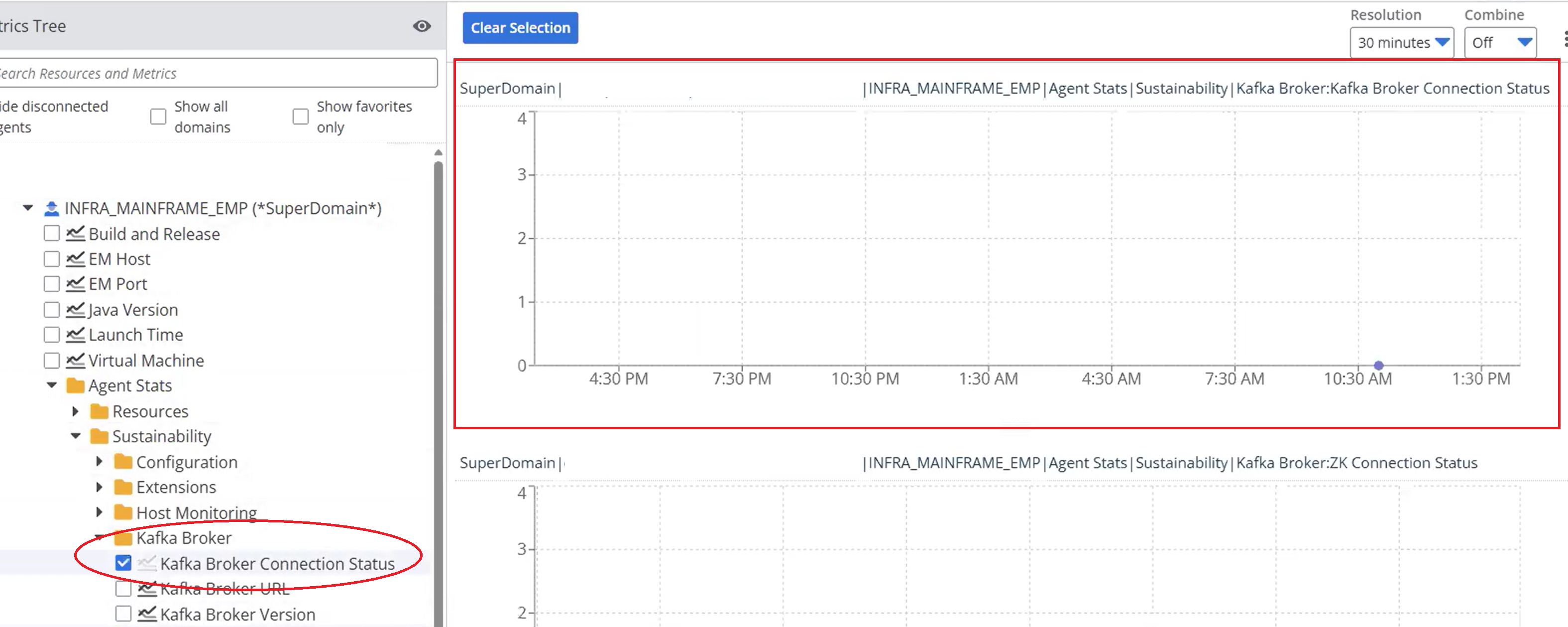 From Metrics view, we noticed "Kafka Broker Connection Status" is down: