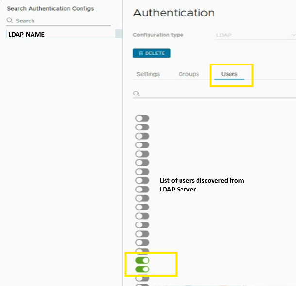 Administration >> Authentication >> Select the LDAP Configuration >> Users.