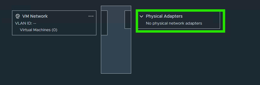 This issue occurs when all physical network adapters are currently available but unassigned (unclaimed), meaning the virtual switch has no physical network adapter configured in active or standby state.