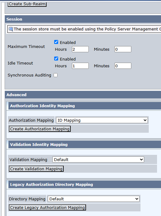 User is Authenticated to a realm which has the idletime=3600;maxtime=7200