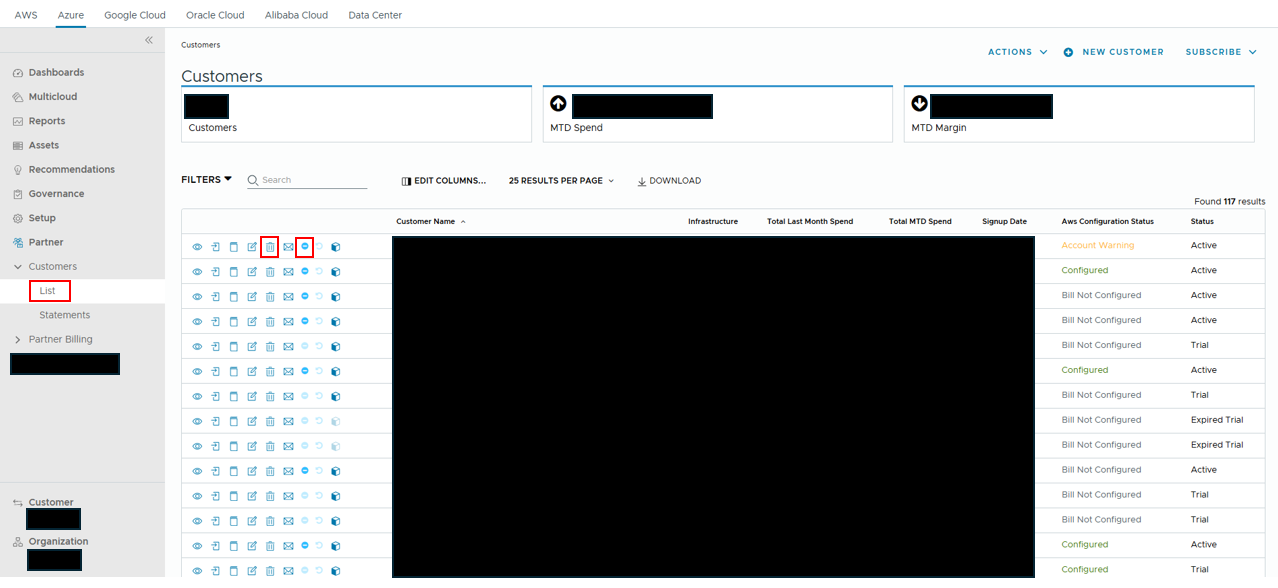3) You can either click the trash can icon to remove the channel customer or click the churn icon to let us know the channel customer has churned.