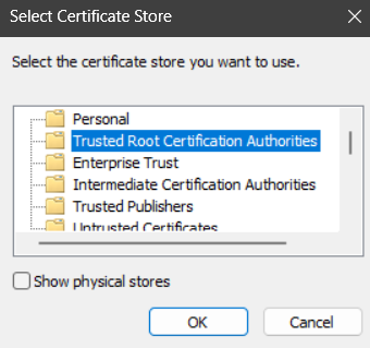 4. Click the browse button and select Trusted RootCertification Authorities: