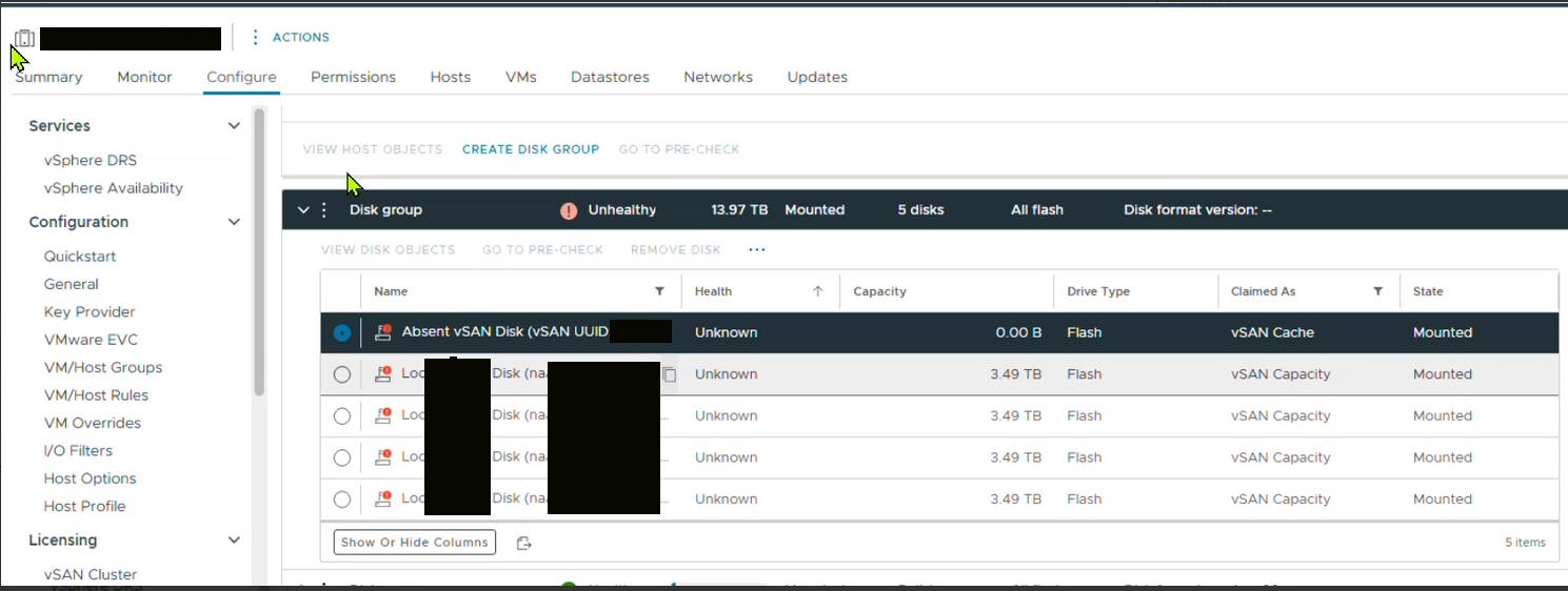 Note: Since the cache disk is faulty, the whole disk group need to remove and re-create with newly added cache disk.