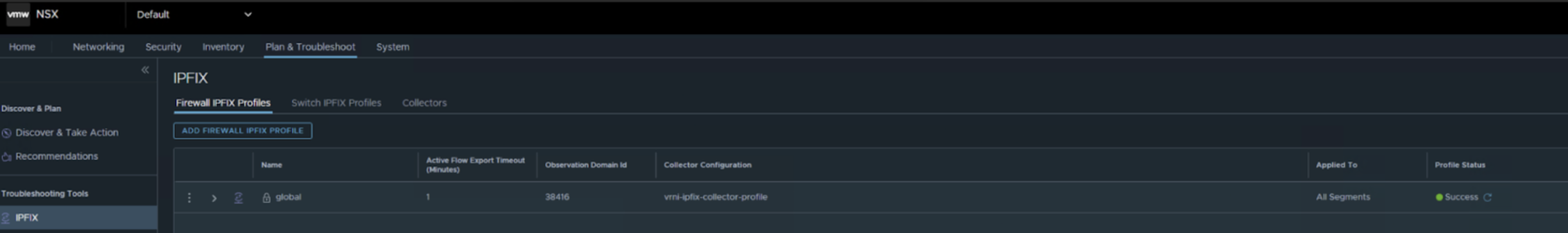 Error: Cannot delete group [/infra/domains/defaut/groups/NLB.VIP.[] due to following entities either lie in the group subtree or are being referred to by the group. Please delete - [[/infra/ipfix-dfw-profiles/Global]] in order to delete the group. (Error code: 500324)