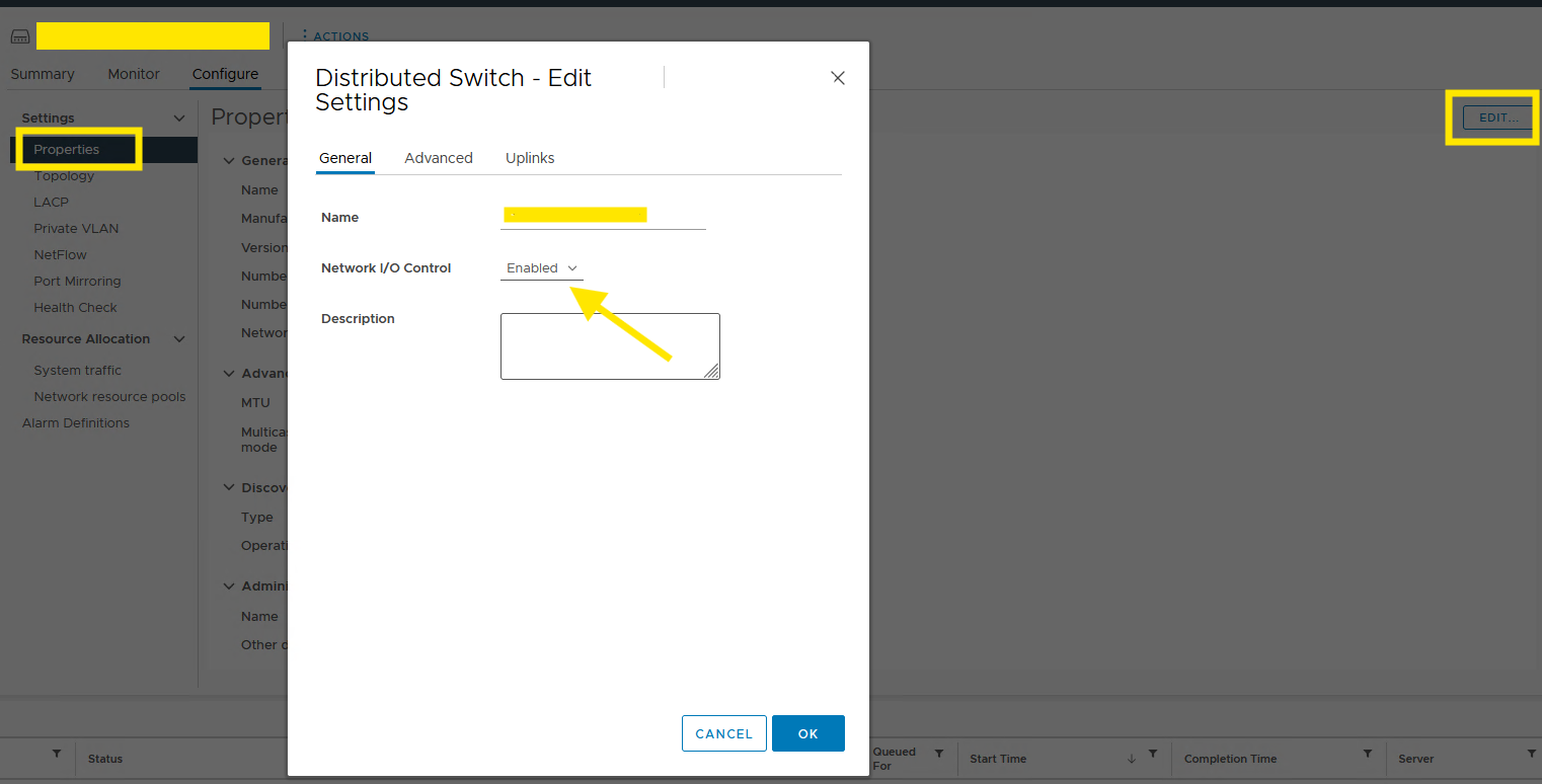 To resolve this issue, you must enable Network I/O Control on the destination Distributed Switch to match the source configuration.