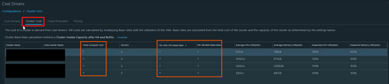 The 'Cluster Cost and Base Rate' should now show the expected value.