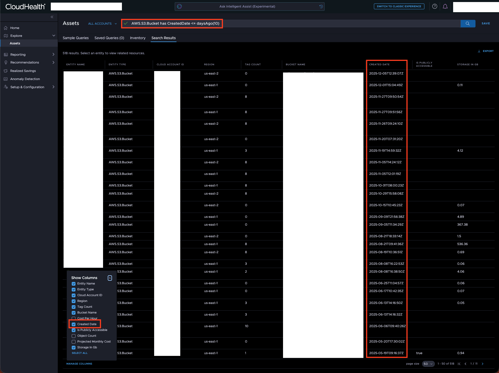 For example, if there is a need to search for s3 buckets that were created prior to the last 10 days, use the query: