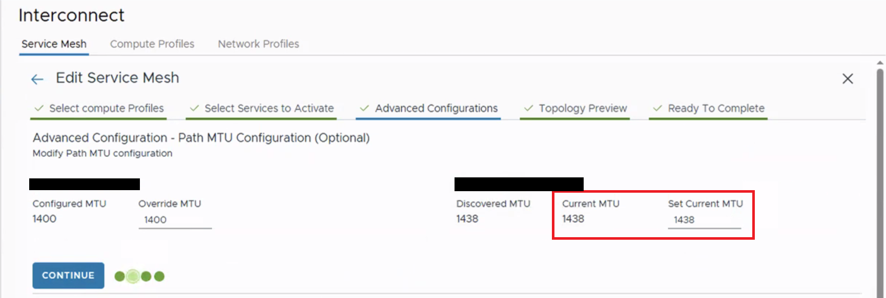 For example, in this case, the service mesh MTU is configured to 1438, as shown below,