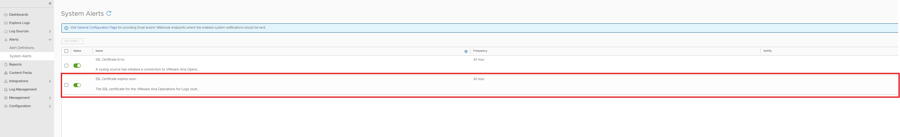 This article enlists the steps to configure certificate expiry notification 30 days prior in Aria Operations for Logs.