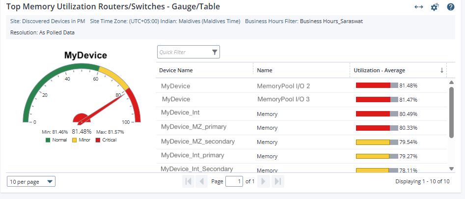 So you can create a dashboard that will work for more than one device to show the single Avg Memory utilization gauge, change the context to cover Group or other broader categories rather than the individual device. For example: