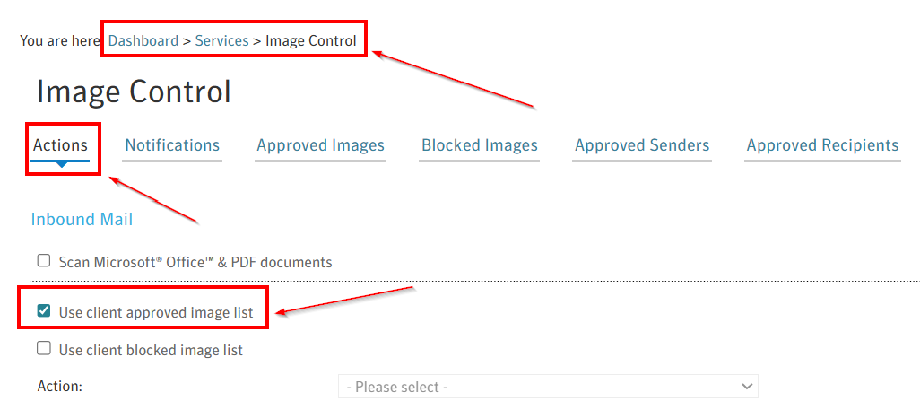 Instructions on enabling a client approved image list in Symantec Email Security.cloud.