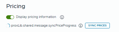 Accessing the VMware Aria Operations integration within the VMware Aria Automation Assembler UI (under Infrastructure > Integrations), the SYNC PRICES task never completes and shows the status provLib.shared.message.syncPriceProgress