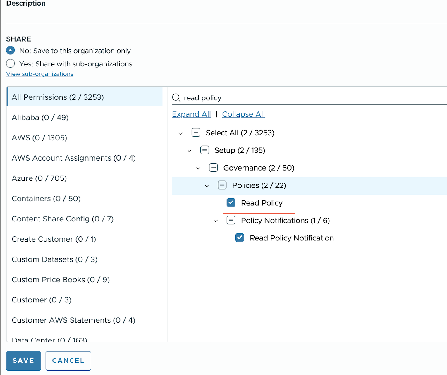 The role document should include the following two permissions to allow access only to the Security Report under Recommendations:
