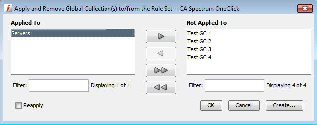 10. Select the Global Collection(s) you wish to apply the rule to and move them to the "Applied To" column and click the OK button