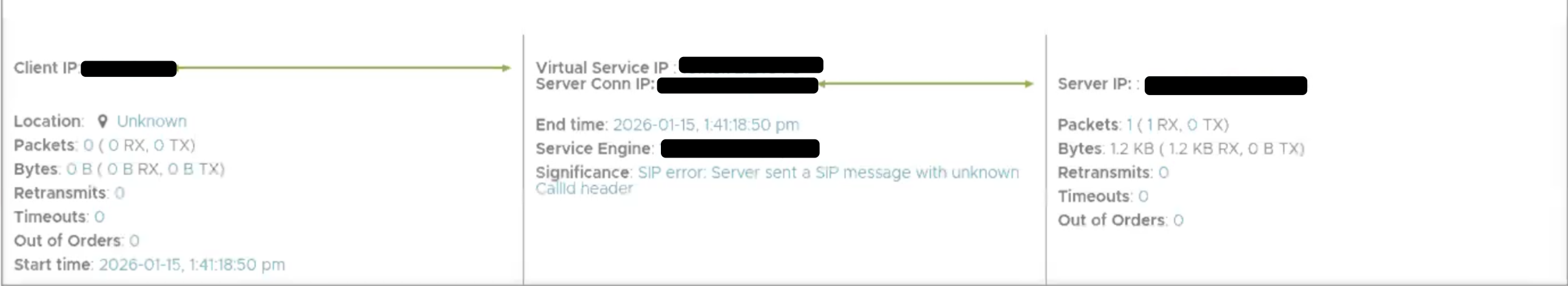 This issue typically occurs in scenarios when a single Virtual Service is configured to handle both UDP and TCP transport protocols for SIP traffic.