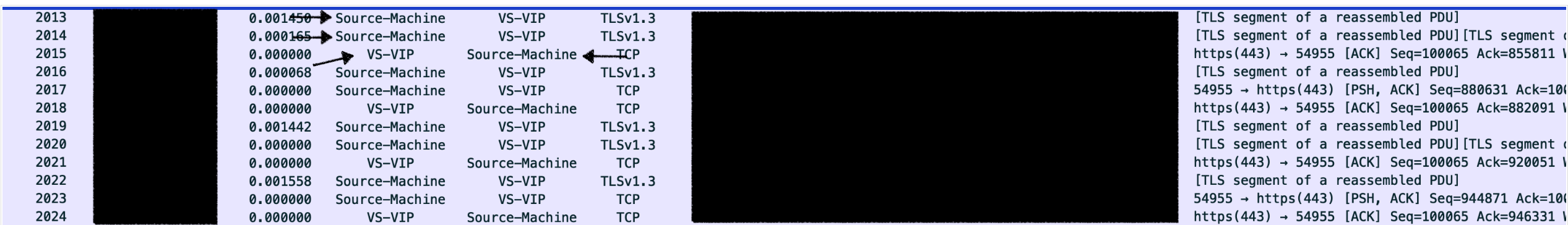 Collect the Virtual service packet capture and observe if we are noticing the following behaviour