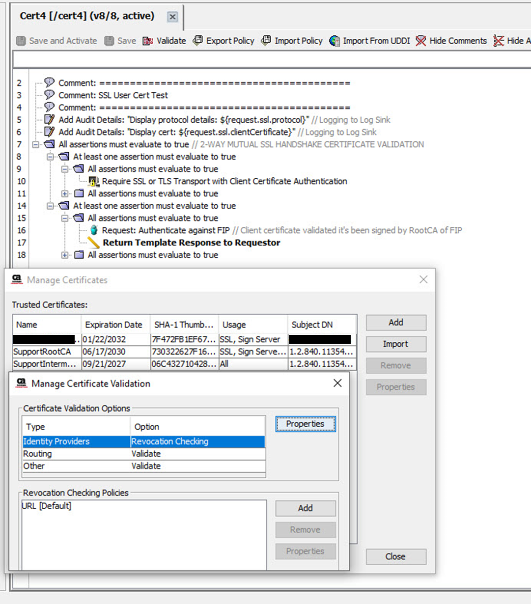 The CA API Gateway is capable of validating client certificates in numerous ways. It can validate chains of trust, validate the validity and expiry periods of certificates, and check certificates against certificate revocation lists (CRL). This article will focus on leveraging a CRL from an external site to validate users or systems consuming services published in and protected by a Gateway cluster. The context of this article will focus on leveraging a CRL against a federated identity provider located within the Gateway appliance. This article can be used with directory services (such as Active Directory or generic LDAP directories) or the internal identity provider as necessary.