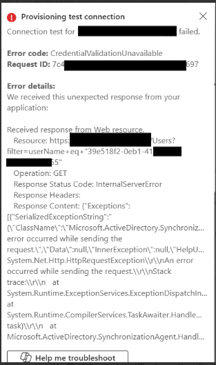 Entra ID SCIM Provisioning fails with Error code "CredentialValidationUnavailable" or "SystemForCrossDomainIdentityManagementCredentialValidationUnavailable" during Test Connection