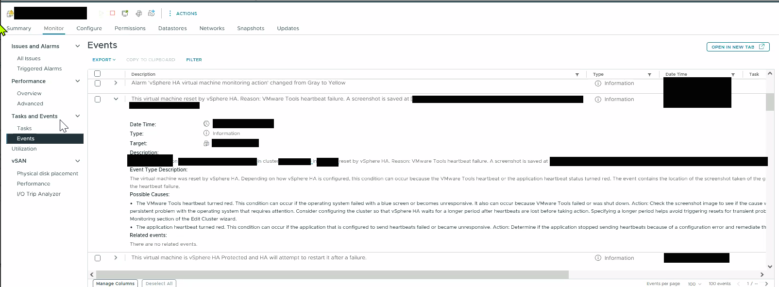 During routine storage optimization tasks (such as unmap operations), the system may temporarily require additional resources. In some instances, this can cause the virtual machine to experience latency or become temporarily inaccessible, and a VM reset may be required..
