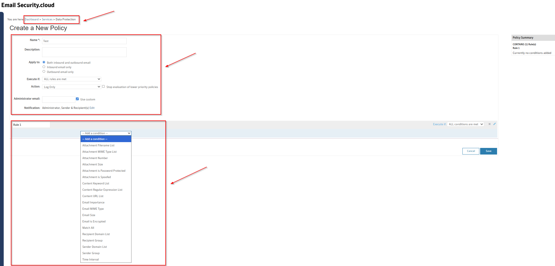 This article describes the steps to create a Data Protection Policy in Email Security.cloud.