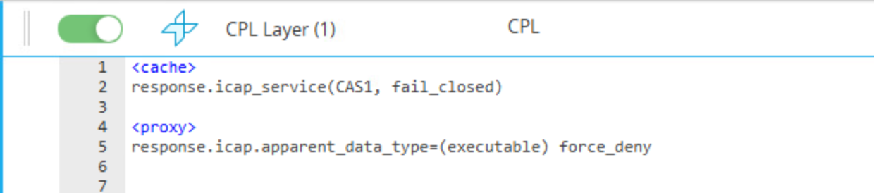 1. Add the following CPL rules under the Edge SWG Management Console > Visual Policy Manager > Add Layer > CPL Layer.