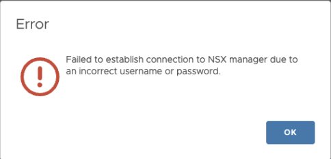 Error - Failed to establish connection to NSX manager due to an incorrect username or password