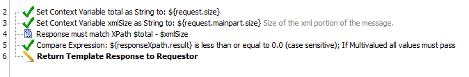 To get a bit more complex, use context variables in the XPath field. The variables used should be saved as a string, and invoked in the 'XPath:' field in the format $variableName. Note the lack of curly brackets around the variable [ {} ]. The policy below shows how this could be utilized to ensure there is an attachment on a message by taking the total request size, subtracting the size of the main body of the message, and seeing if there is a remainder.