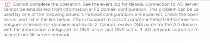 While configuring the Domain on vSAN File Server getting an error: