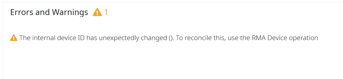 The internal device ID has unexpectedly changed (). To reconcile this, use the RMA Device operation.