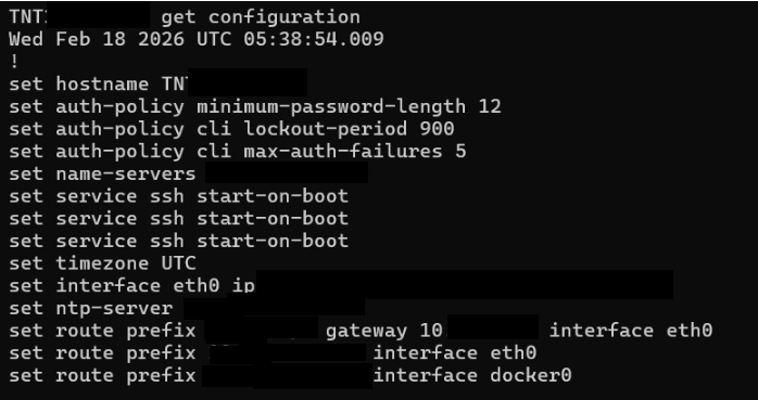 get logging-servers on the affected Edge Node CLI returns an empty list or indicates no servers are configured.get configuration confirms the syslog server details are missing from the Edge VM's local running configuration.get node central-config confirms that the central configuration state is Enabled, yet the logging parameters are not inherited.Log snippets: