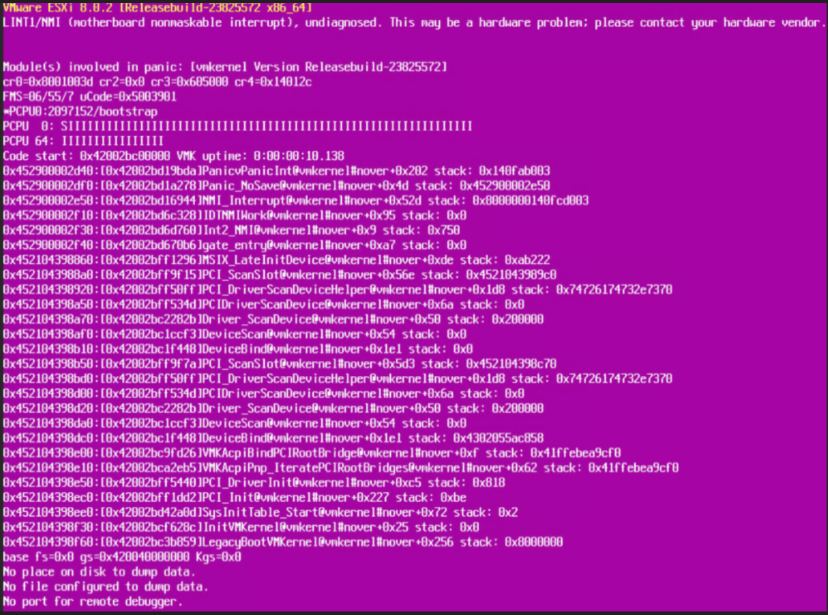 ESXi Server crashes with PSOD in response to Non Maskable Interrupt (NMI) triggered due to erroring PCI Device.