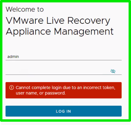When attempting to manage the VMware Live Recovery Appliance, you encounter the following issues: